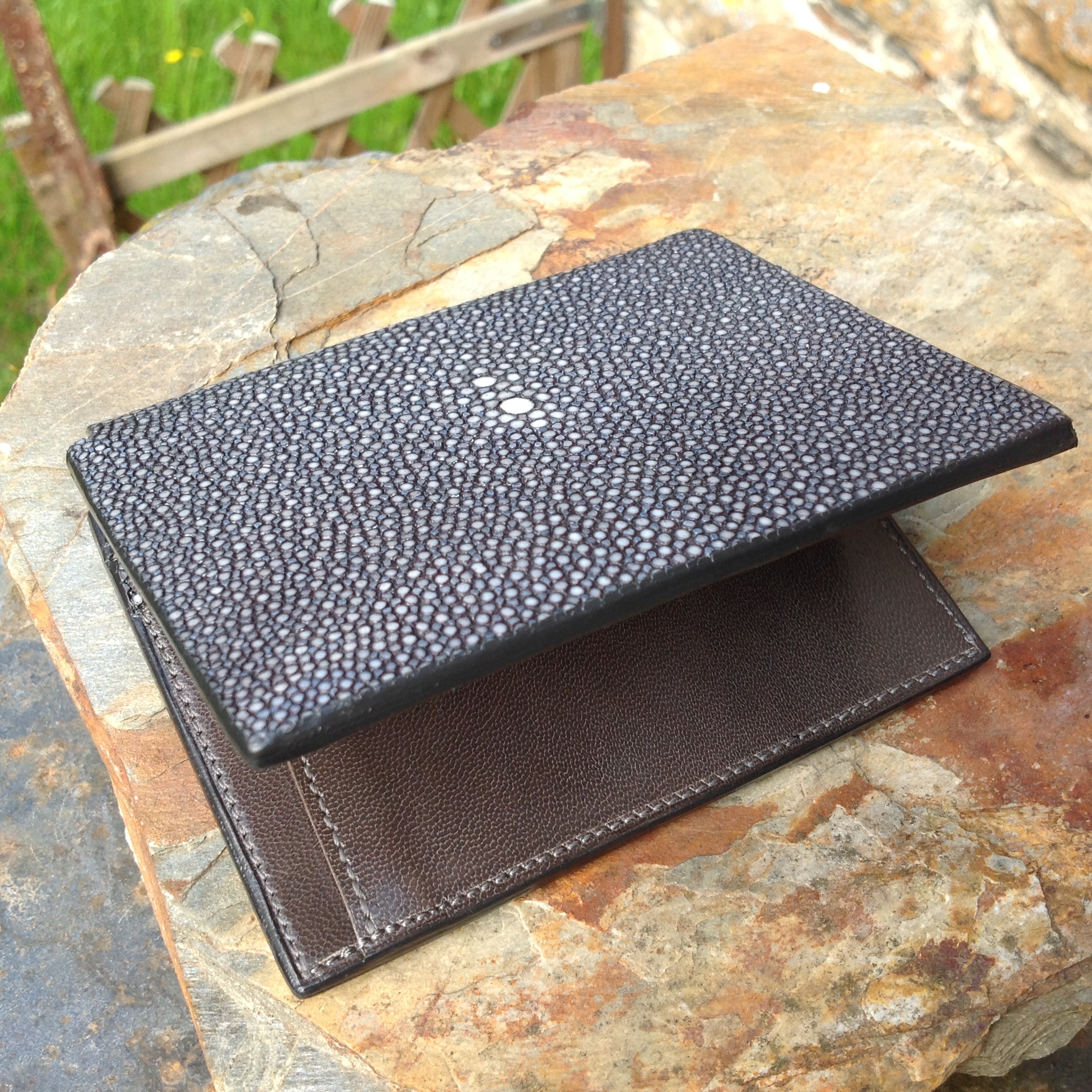 porte feuille en galuchat et    veau doublé  satin de soie