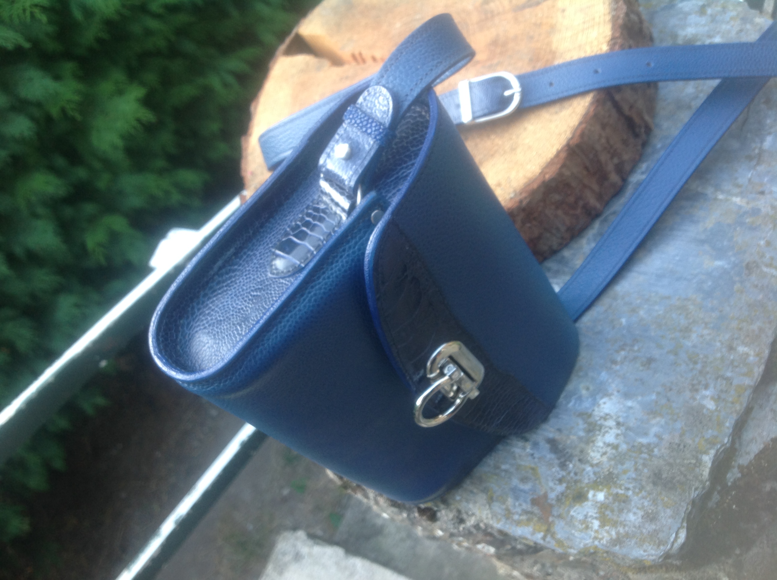 Pochette taurillon impression galuchat,pattes d autruche et galuchat